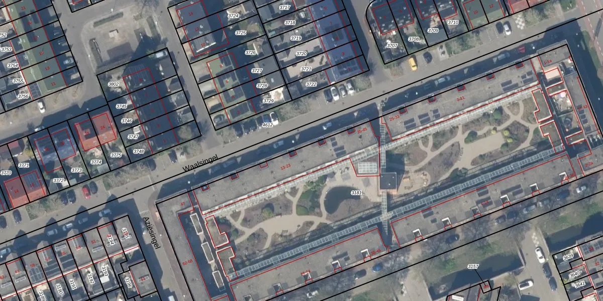 Het perceel waarop Waalsingel 23 staat heeft een oppervlakte van 6320 m². Dit is een zeer groot perceel. De perceeloppervlakte wordt geregistreerd door het Kadaster. Gedetailleerde informatie over de maten van dit perceel kunt u vinden in het rapport Kadastrale kaart met maatvoering van Waalsingel 23.