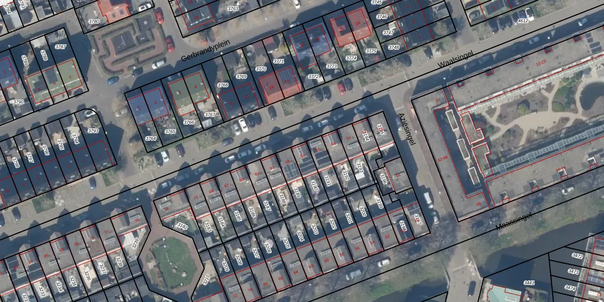 Het perceel waarop Waalsingel 57 staat heeft een oppervlakte van 118 m². Dit is een middelgroot perceel. De perceeloppervlakte wordt geregistreerd door het Kadaster. Gedetailleerde informatie over de maten van dit perceel kunt u vinden in het rapport Kadastrale kaart met maatvoering van Waalsingel 57.