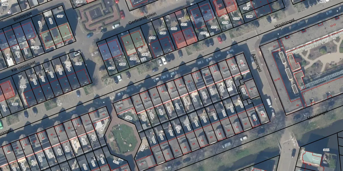 Het perceel waarop Waalsingel 63 staat heeft een oppervlakte van 116 m². Dit is een middelgroot perceel. De perceeloppervlakte wordt geregistreerd door het Kadaster. Gedetailleerde informatie over de maten van dit perceel kunt u vinden in het rapport Kadastrale kaart met maatvoering van Waalsingel 63.