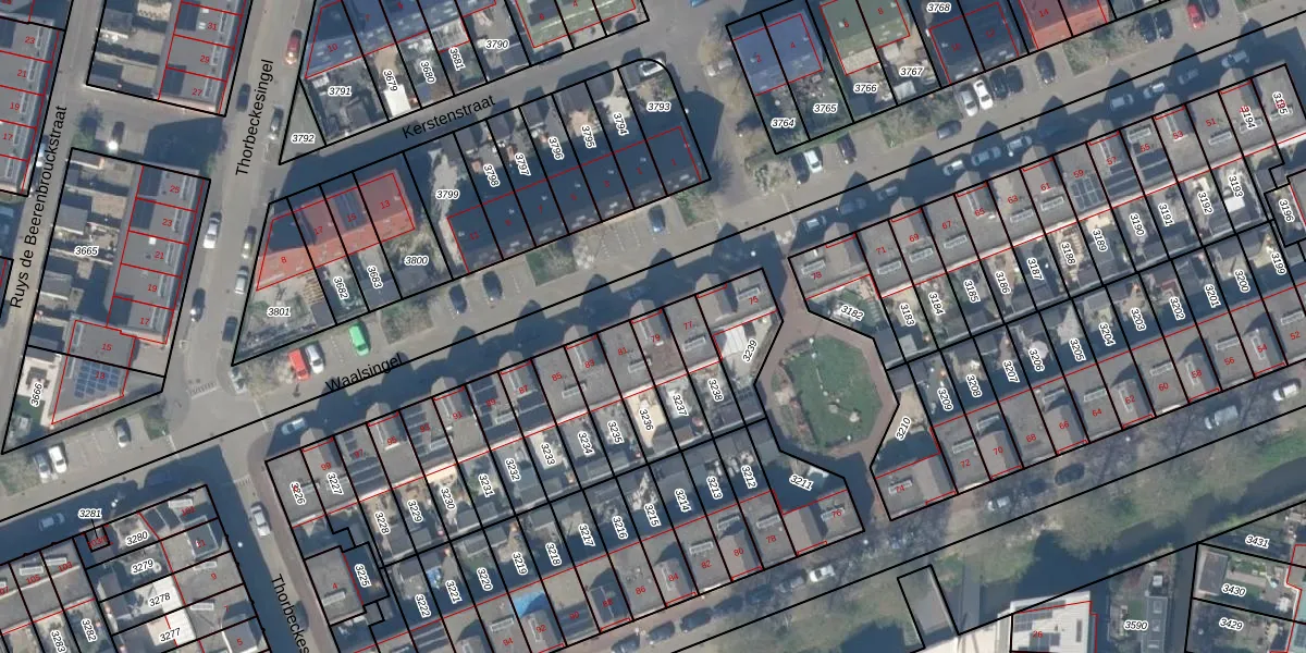 Het perceel waarop Waalsingel 79 staat heeft een oppervlakte van 117 m². Dit is een middelgroot perceel. De perceeloppervlakte wordt geregistreerd door het Kadaster. Gedetailleerde informatie over de maten van dit perceel kunt u vinden in het rapport Kadastrale kaart met maatvoering van Waalsingel 79.