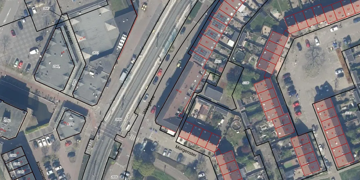 Het perceel waarop Weegbree 45 staat heeft een oppervlakte van 2835 m². Dit is een zeer groot perceel. De perceeloppervlakte wordt geregistreerd door het Kadaster. Gedetailleerde informatie over de maten van dit perceel kunt u vinden in het rapport Kadastrale kaart met maatvoering van Weegbree 45.