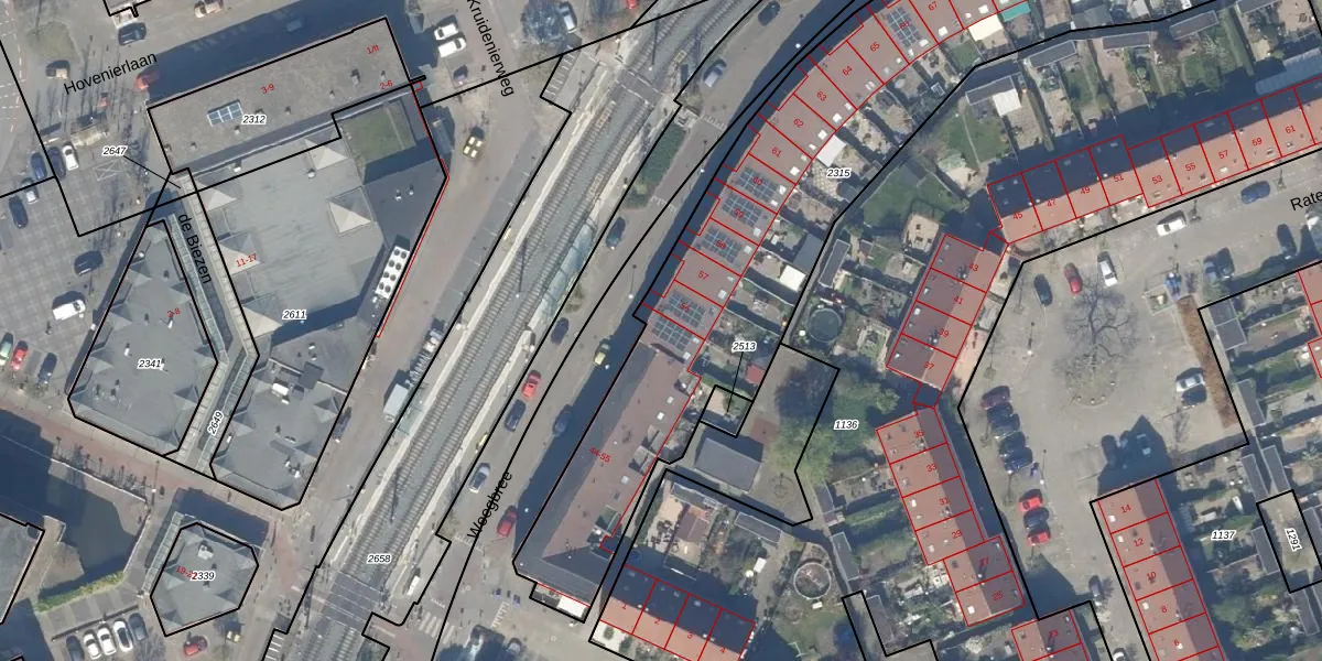 Het perceel waarop Weegbree 55 staat heeft een oppervlakte van 2835 m². Dit is een zeer groot perceel. De perceeloppervlakte wordt geregistreerd door het Kadaster. Gedetailleerde informatie over de maten van dit perceel kunt u vinden in het rapport Kadastrale kaart met maatvoering van Weegbree 55.