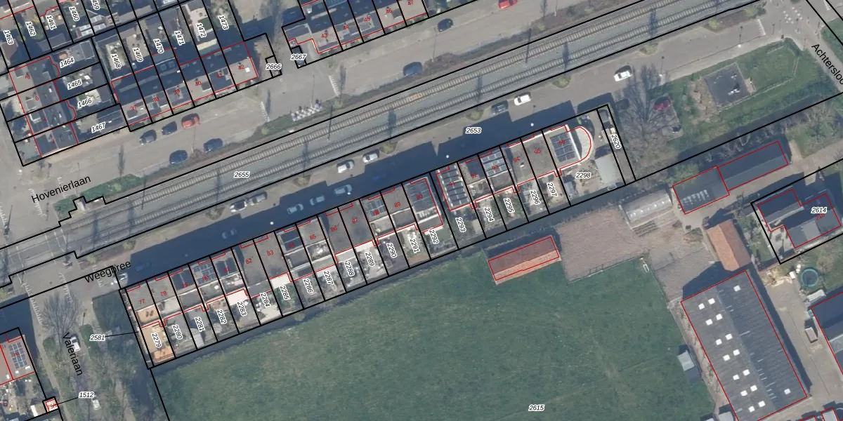 Gebruik de zoekbalk of klik op een perceel voor informatie over de adressen binnen dit perceel.