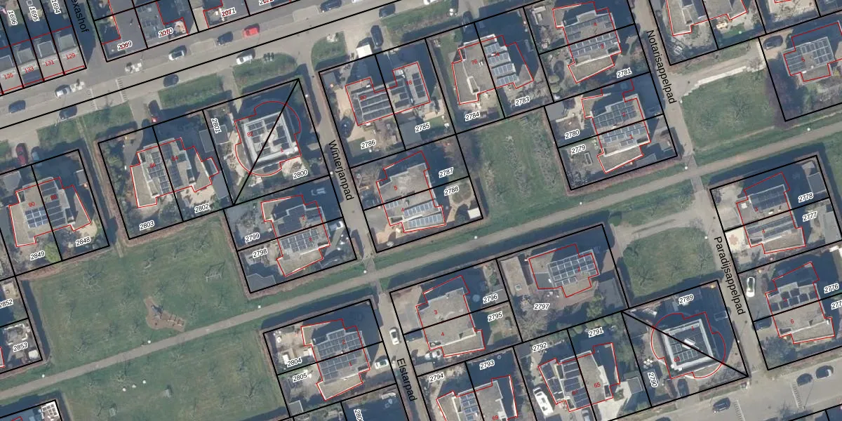 Gebruik de zoekbalk of klik op een perceel voor informatie over de adressen binnen dit perceel.