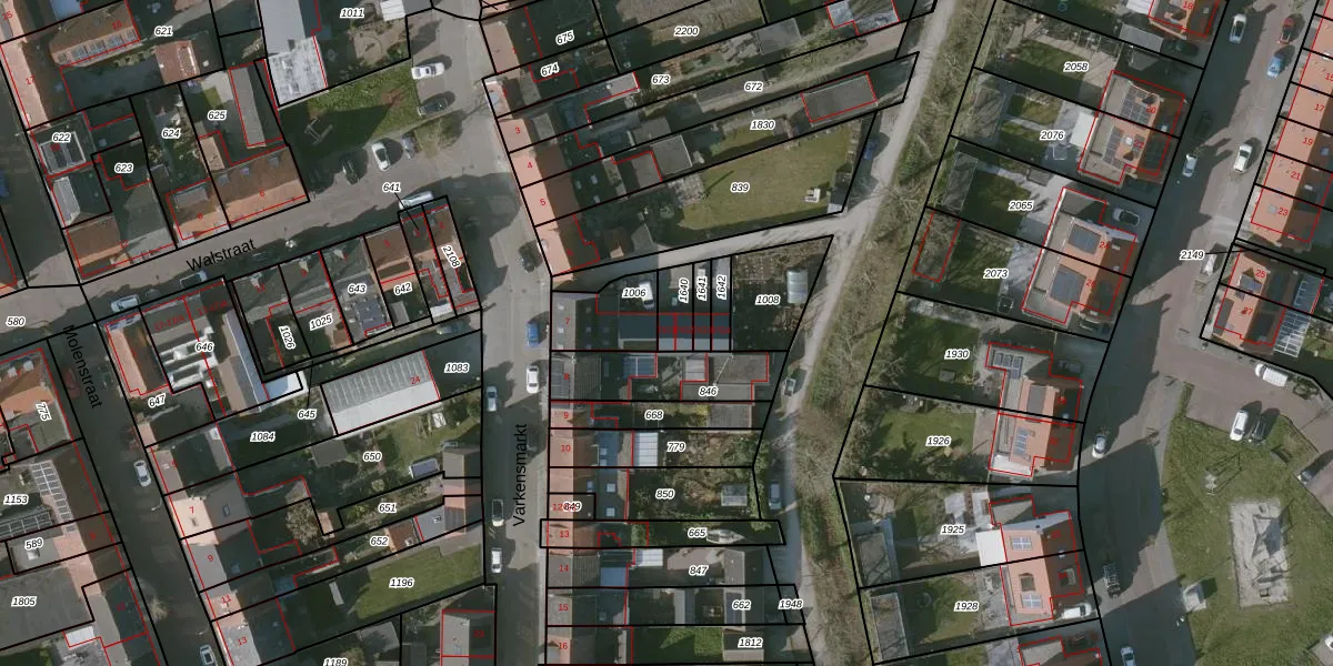 Het perceel waarop Varkensmarkt 7-G1 staat heeft een oppervlakte van 69 m². Dit is een klein perceel. De perceeloppervlakte wordt geregistreerd door het Kadaster. Gedetailleerde informatie over de maten van dit perceel kunt u vinden in het rapport Kadastrale kaart met maatvoering van Varkensmarkt 7-G1.