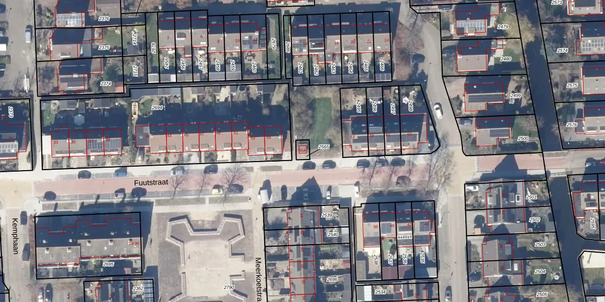 Het perceel waarop Fuutstraat 55-A staat heeft een oppervlakte van 29 m². Dit is een klein perceel. De perceeloppervlakte wordt geregistreerd door het Kadaster. Gedetailleerde informatie over de maten van dit perceel kunt u vinden in het rapport Kadastrale kaart met maatvoering van Fuutstraat 55-A.