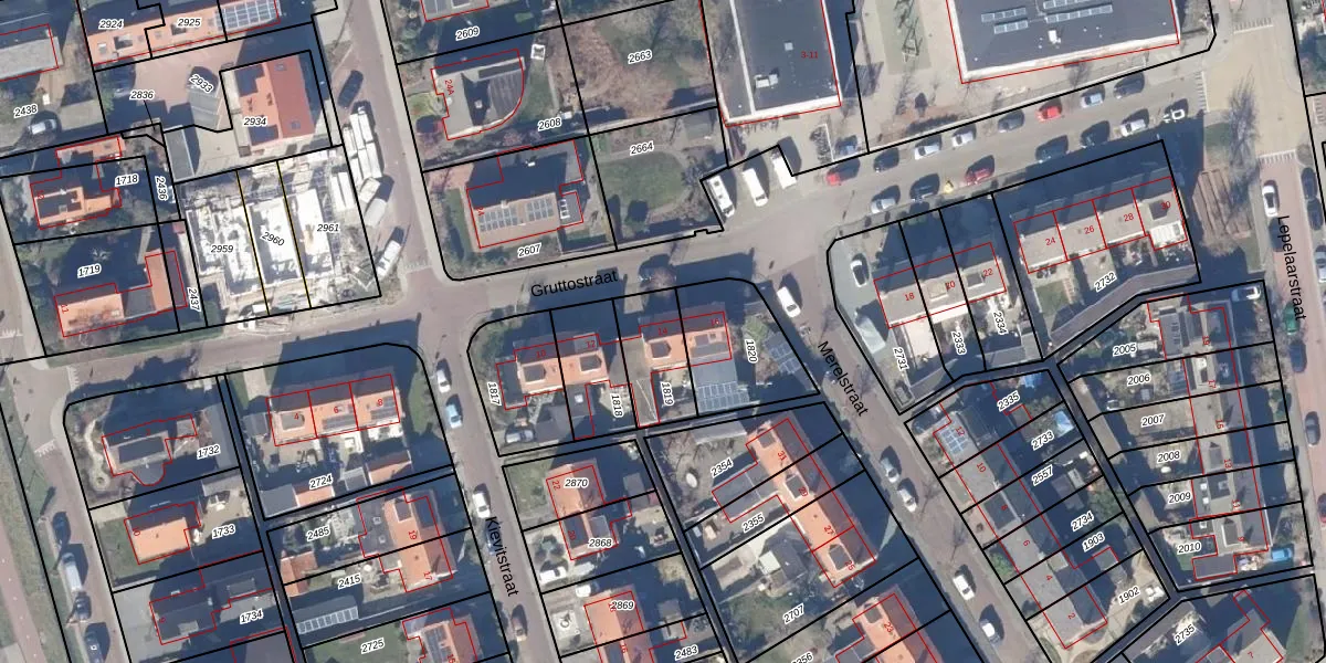 Het perceel waarop Gruttostraat 14 staat heeft een oppervlakte van 193 m². Dit is een middelgroot perceel. De perceeloppervlakte wordt geregistreerd door het Kadaster. Gedetailleerde informatie over de maten van dit perceel kunt u vinden in het rapport Kadastrale kaart met maatvoering van Gruttostraat 14.