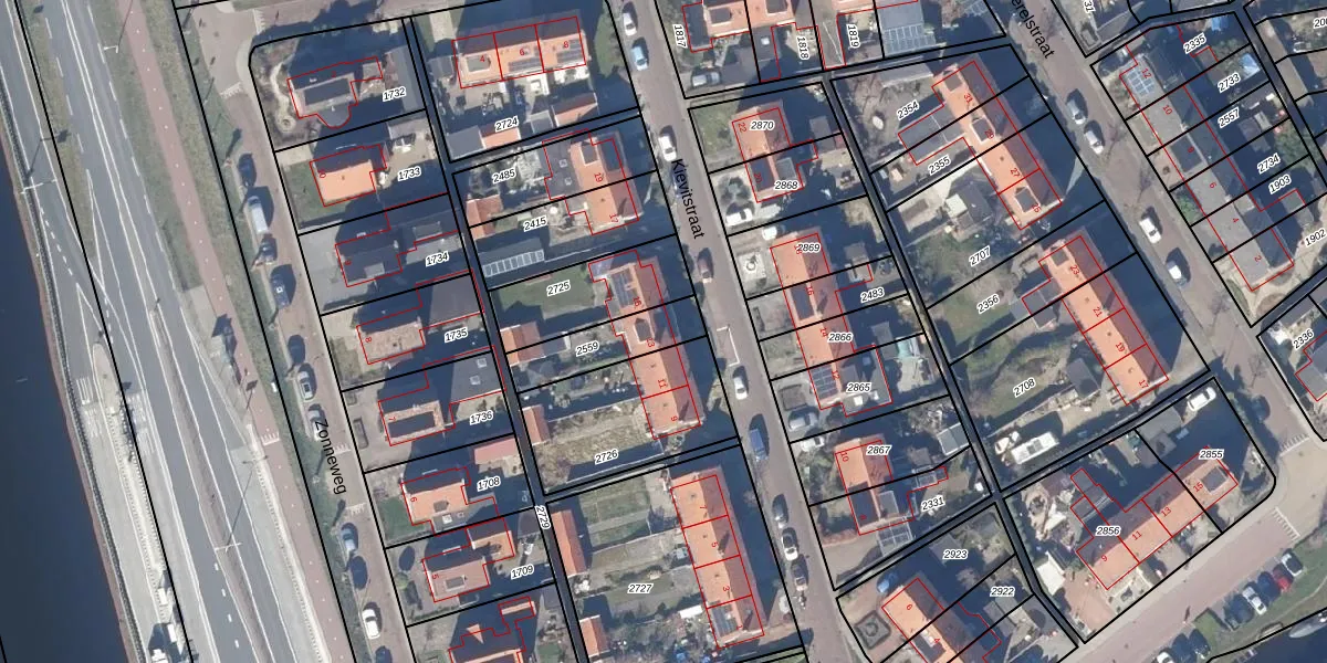 Gebruik de zoekbalk of klik op een perceel voor informatie over de adressen binnen dit perceel.