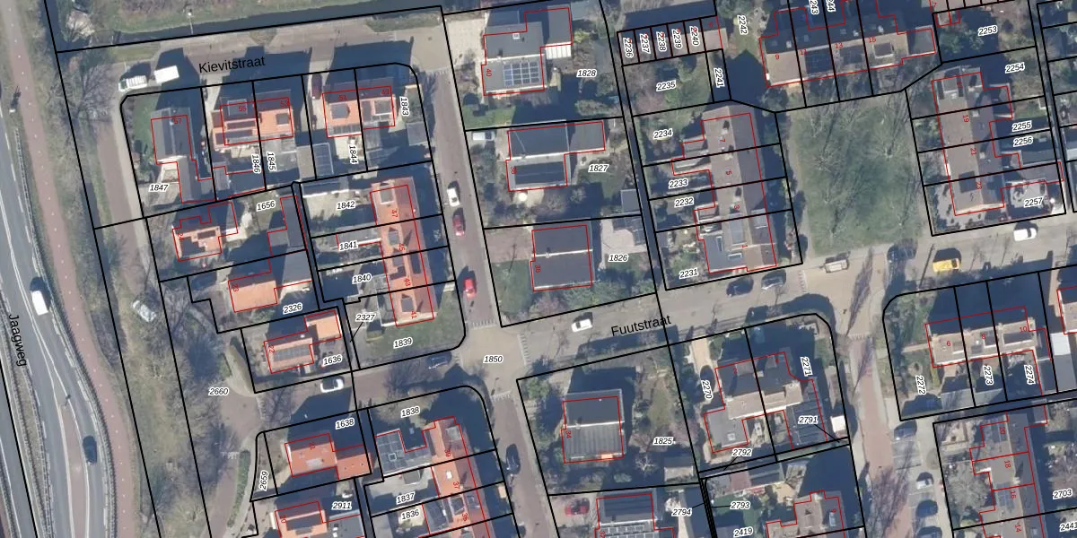 Gebruik de zoekbalk of klik op een perceel voor informatie over de adressen binnen dit perceel.