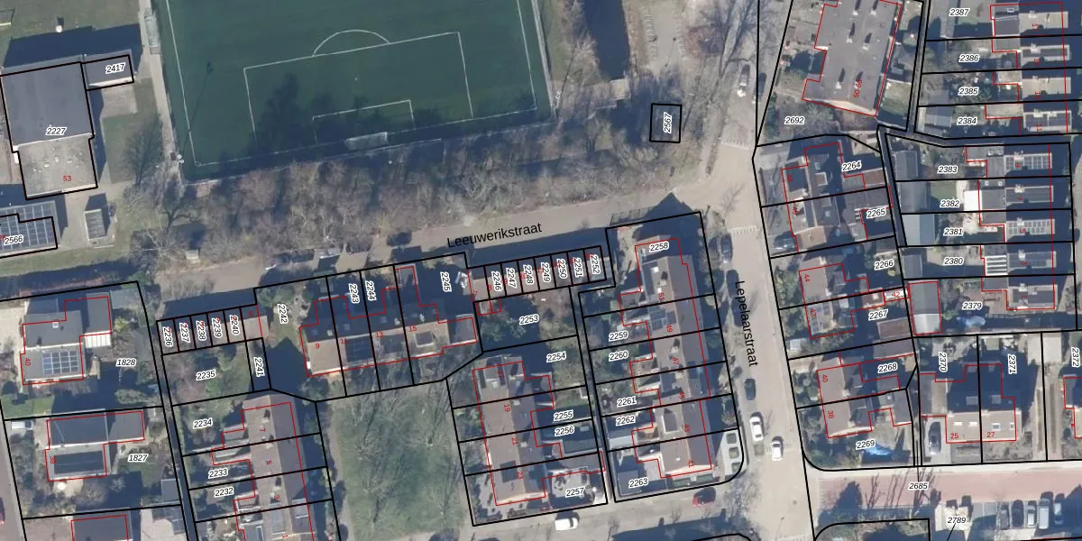 Gebruik de zoekbalk of klik op een perceel voor informatie over de adressen binnen dit perceel.