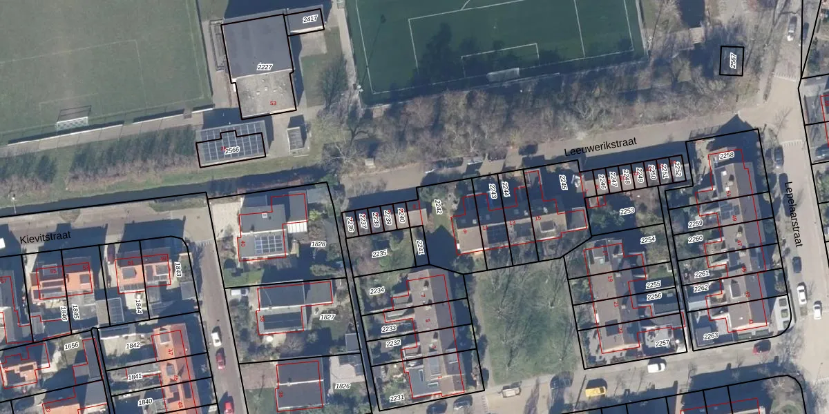 Het perceel waarop Leeuwerikstraat 6 staat heeft een oppervlakte van 309 m². Dit is een groot perceel. De perceeloppervlakte wordt geregistreerd door het Kadaster. Gedetailleerde informatie over de maten van dit perceel kunt u vinden in het rapport Kadastrale kaart met maatvoering van Leeuwerikstraat 6.