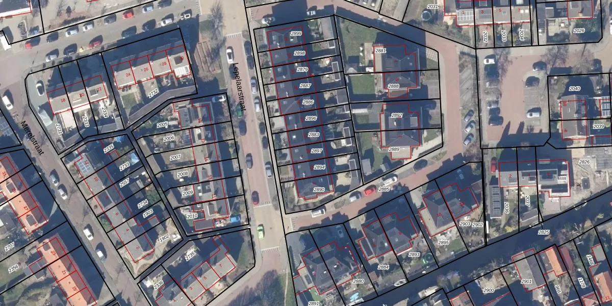 Gebruik de zoekbalk of klik op een perceel voor informatie over de adressen binnen dit perceel.