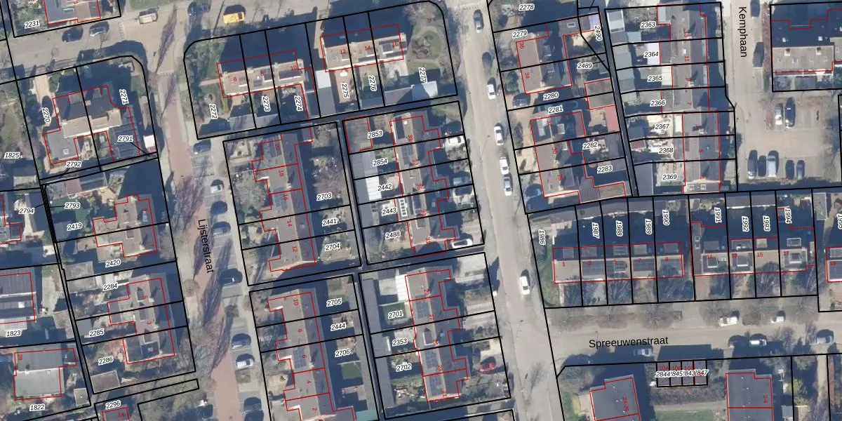 Gebruik de zoekbalk of klik op een perceel voor informatie over de adressen binnen dit perceel.
