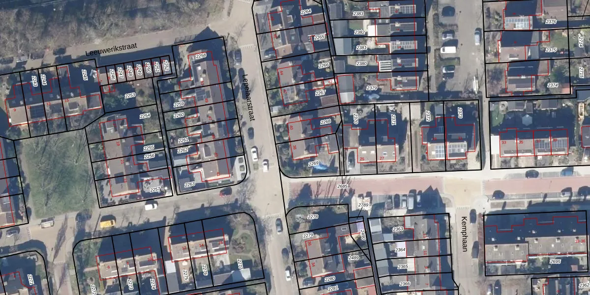 Het perceel waarop Lepelaarstraat 38 staat heeft een oppervlakte van 262 m². Dit is een middelgroot perceel. De perceeloppervlakte wordt geregistreerd door het Kadaster. Gedetailleerde informatie over de maten van dit perceel kunt u vinden in het rapport Kadastrale kaart met maatvoering van Lepelaarstraat 38.