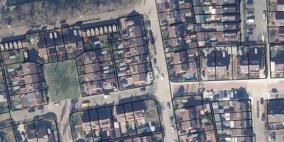 Gebruik de zoekbalk of klik op een perceel voor informatie over de adressen binnen dit perceel.