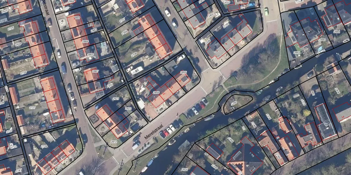 Merelstraat 13 is gelegen op kadastraal perceel WTL00E2856. Deze kadastrale aanduiding is uniek en wordt gebruikt door het Kadaster om eigendomsrechten en andere zakelijke rechten vast te leggen. Het perceel maakt onderdeel uit van de kadastrale gemeente Waterland.