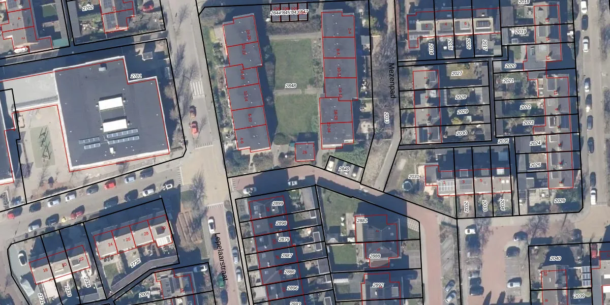 Het perceel waarop Mezenpad 26 staat heeft een oppervlakte van 2750 m². Dit is een zeer groot perceel. De perceeloppervlakte wordt geregistreerd door het Kadaster. Gedetailleerde informatie over de maten van dit perceel kunt u vinden in het rapport Kadastrale kaart met maatvoering van Mezenpad 26.