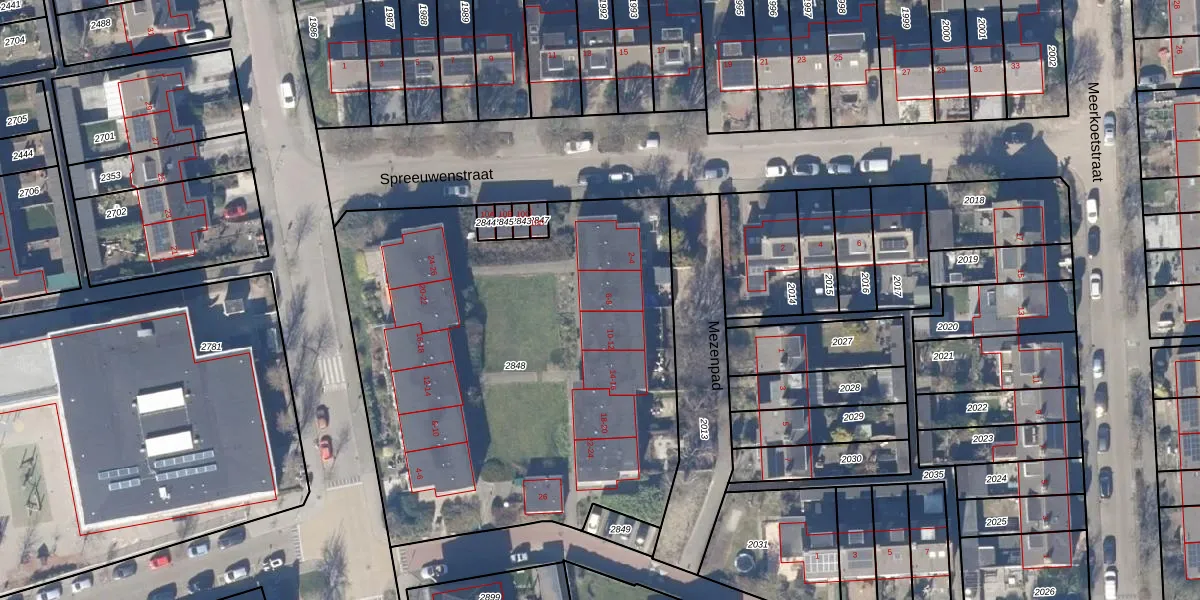 Het perceel waarop Mezenpad 8 staat heeft een oppervlakte van 2750 m². Dit is een zeer groot perceel. De perceeloppervlakte wordt geregistreerd door het Kadaster. Gedetailleerde informatie over de maten van dit perceel kunt u vinden in het rapport Kadastrale kaart met maatvoering van Mezenpad 8.