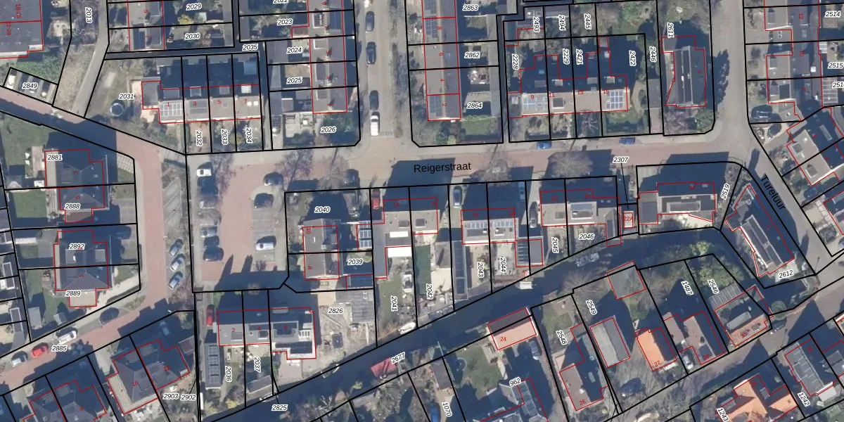 Reigerstraat 14 is gelegen op kadastraal perceel WTL00E2042. Deze kadastrale aanduiding is uniek en wordt gebruikt door het Kadaster om eigendomsrechten en andere zakelijke rechten vast te leggen. Het perceel maakt onderdeel uit van de kadastrale gemeente Waterland.