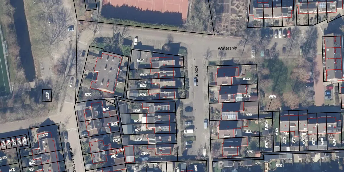 Het perceel waarop Roerdomp 13 staat heeft een oppervlakte van 201 m². Dit is een middelgroot perceel. De perceeloppervlakte wordt geregistreerd door het Kadaster. Gedetailleerde informatie over de maten van dit perceel kunt u vinden in het rapport Kadastrale kaart met maatvoering van Roerdomp 13.