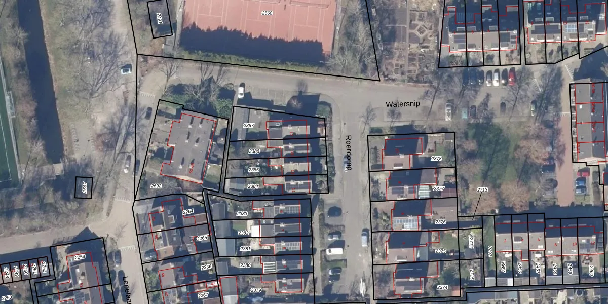 Het perceel waarop Roerdomp 15 staat heeft een oppervlakte van 195 m². Dit is een middelgroot perceel. De perceeloppervlakte wordt geregistreerd door het Kadaster. Gedetailleerde informatie over de maten van dit perceel kunt u vinden in het rapport Kadastrale kaart met maatvoering van Roerdomp 15.