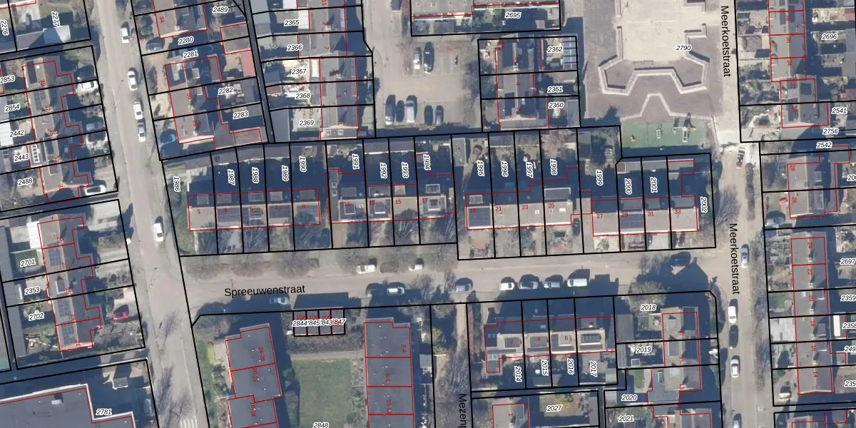 Gebruik de zoekbalk of klik op een perceel voor informatie over de adressen binnen dit perceel.