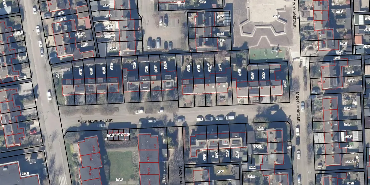 Gebruik de zoekbalk of klik op een perceel voor informatie over de adressen binnen dit perceel.