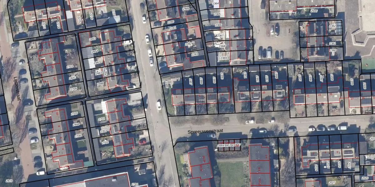 Gebruik de zoekbalk of klik op een perceel voor informatie over de adressen binnen dit perceel.
