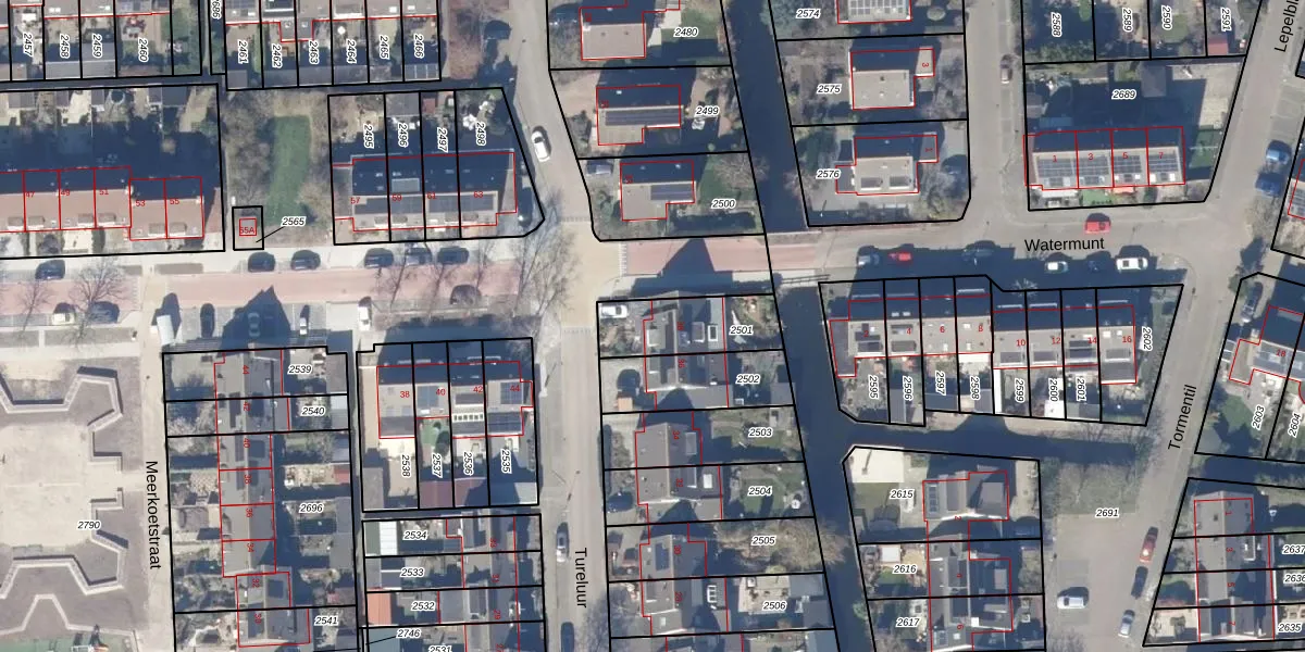 Tureluur 38 is gelegen op kadastraal perceel WTL00E2501. Deze kadastrale aanduiding is uniek en wordt gebruikt door het Kadaster om eigendomsrechten en andere zakelijke rechten vast te leggen. Het perceel maakt onderdeel uit van de kadastrale gemeente Waterland.