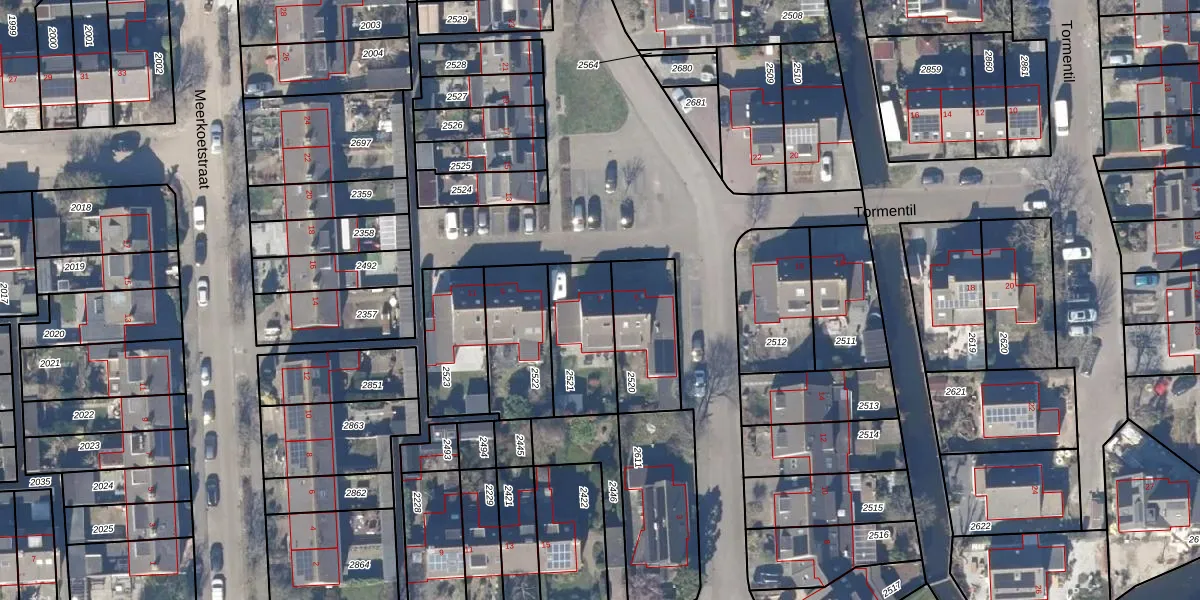 Gebruik de zoekbalk of klik op een perceel voor informatie over de adressen binnen dit perceel.