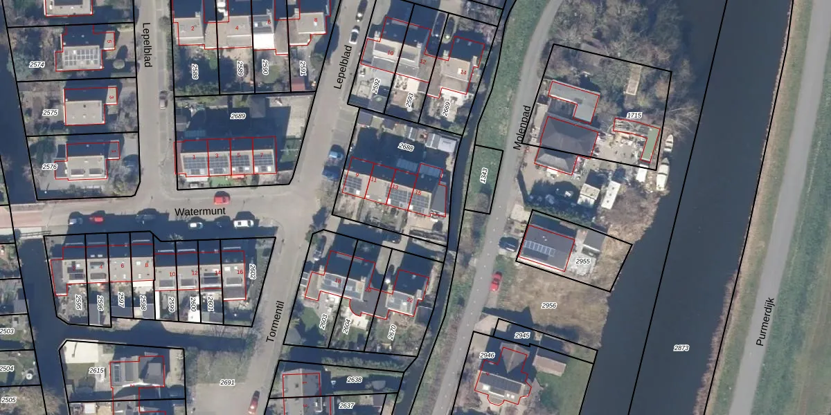 Het perceel waarop Watermunt 15 staat heeft een oppervlakte van 708 m². Dit is een groot perceel. De perceeloppervlakte wordt geregistreerd door het Kadaster. Gedetailleerde informatie over de maten van dit perceel kunt u vinden in het rapport Kadastrale kaart met maatvoering van Watermunt 15.