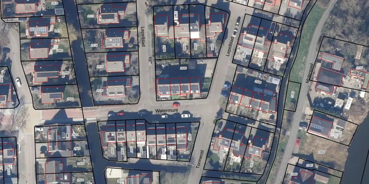 Het perceel waarop Watermunt 5 staat heeft een oppervlakte van 683 m². Dit is een groot perceel. De perceeloppervlakte wordt geregistreerd door het Kadaster. Gedetailleerde informatie over de maten van dit perceel kunt u vinden in het rapport Kadastrale kaart met maatvoering van Watermunt 5.