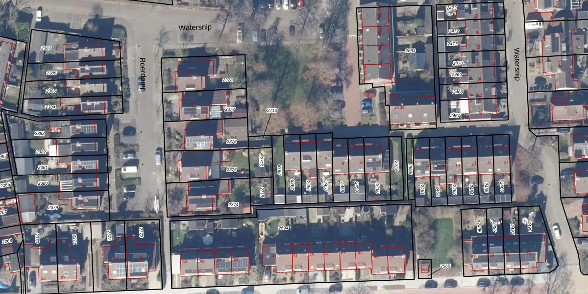 Gebruik de zoekbalk of klik op een perceel voor informatie over de adressen binnen dit perceel.