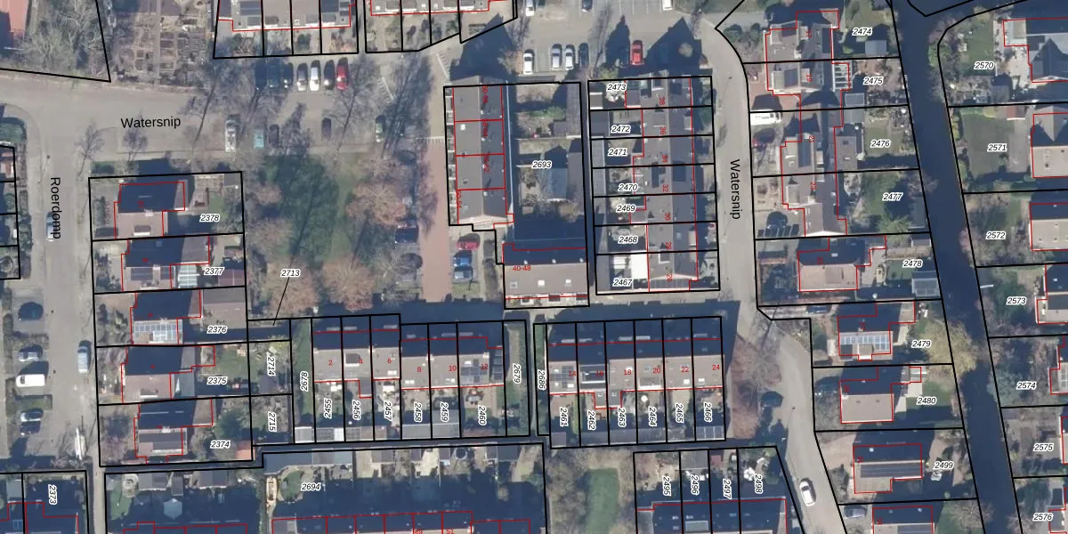 Het perceel waarop Watersnip 42 staat heeft een oppervlakte van 926 m². Dit is een groot perceel. De perceeloppervlakte wordt geregistreerd door het Kadaster. Gedetailleerde informatie over de maten van dit perceel kunt u vinden in het rapport Kadastrale kaart met maatvoering van Watersnip 42.