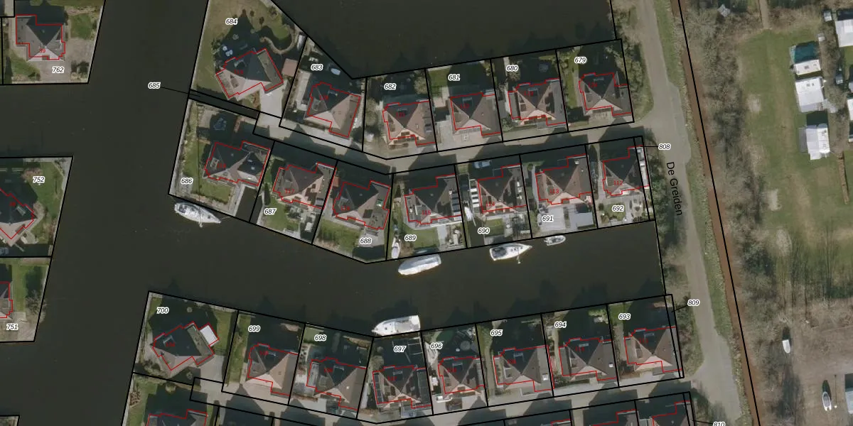 De Greiden 115 is gelegen op kadastraal perceel WED00C689. Deze kadastrale aanduiding is uniek en wordt gebruikt door het Kadaster om eigendomsrechten en andere zakelijke rechten vast te leggen. Het perceel maakt onderdeel uit van de kadastrale gemeente Woudsend.