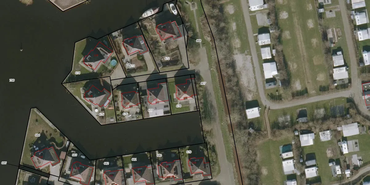 Het perceel waarop het adres ligt is WED00-C-678. De afkorting 'WED00' staat voor kadastrale gemeente Woudsend. De gemiddelde perceelgrootte in Woudsend is 1,3 ha. Dit perceel is kleiner: de perceeloppervlakte bedraagt 277 m². Het kleinste perceel in de kadastrale gemeente is 0 m² groot. De grootste perceeloppervlakte is 1,93 km². Dit is het enige adres dat aanwezig is op het perceel. De huidige grenzen van het perceel zijn digitaal in de Basisregistratie Kadaster (BRK) geregistreerd op 30-01-2007.