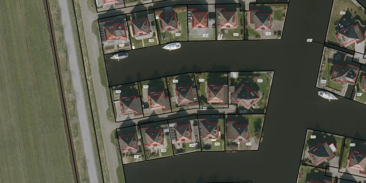 De Greiden 47 is gelegen op kadastraal perceel WED00C754. Deze kadastrale aanduiding is uniek en wordt gebruikt door het Kadaster om eigendomsrechten en andere zakelijke rechten vast te leggen. Het perceel maakt onderdeel uit van de kadastrale gemeente Woudsend.