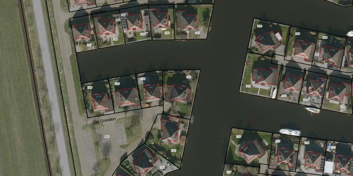 De Greiden 55 is gelegen op kadastraal perceel WED00C743. Deze kadastrale aanduiding is uniek en wordt gebruikt door het Kadaster om eigendomsrechten en andere zakelijke rechten vast te leggen. Het perceel maakt onderdeel uit van de kadastrale gemeente Woudsend.