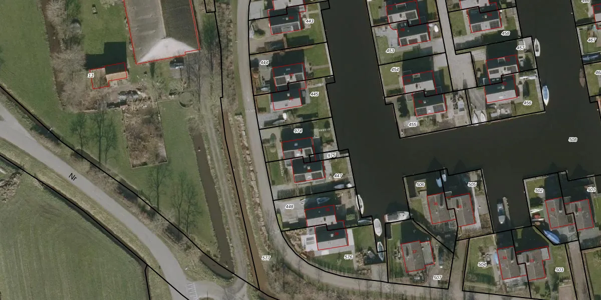 Het adres ligt op het perceel WED00-C-974, dat zich in de kadastrale gemeente Woudsend bevindt. De gemiddelde perceelgrootte in Woudsend is 1,3 ha. Dit perceel is kleiner: de perceeloppervlakte bedraagt 283 m². Het kleinste perceel in de kadastrale gemeente is 0 m² groot. De grootste perceeloppervlakte is 1,93 km². Op het perceel bevinden zich geen andere adressen. De huidige grenzen van het perceel zijn digitaal in de Basisregistratie Kadaster (BRK) geregistreerd op 23-08-2021.