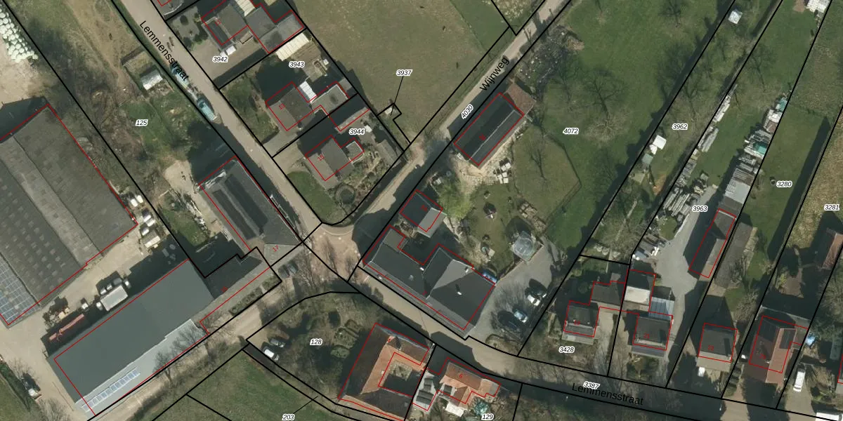 Het perceel waarop Wijnweg 2-A staat heeft een oppervlakte van 3700 m². Dit is een zeer groot perceel. De perceeloppervlakte wordt geregistreerd door het Kadaster. Gedetailleerde informatie over de maten van dit perceel kunt u vinden in het rapport Kadastrale kaart met maatvoering van Wijnweg 2-A.