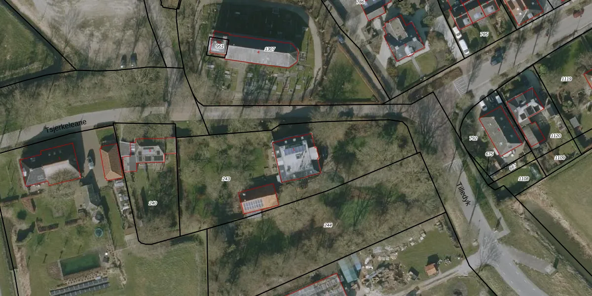 Het perceel waarop Tsjerkeleane 1 staat heeft een oppervlakte van 1960 m². Dit is een zeer groot perceel. De perceeloppervlakte wordt geregistreerd door het Kadaster. Gedetailleerde informatie over de maten van dit perceel kunt u vinden in het rapport Kadastrale kaart met maatvoering van Tsjerkeleane 1.