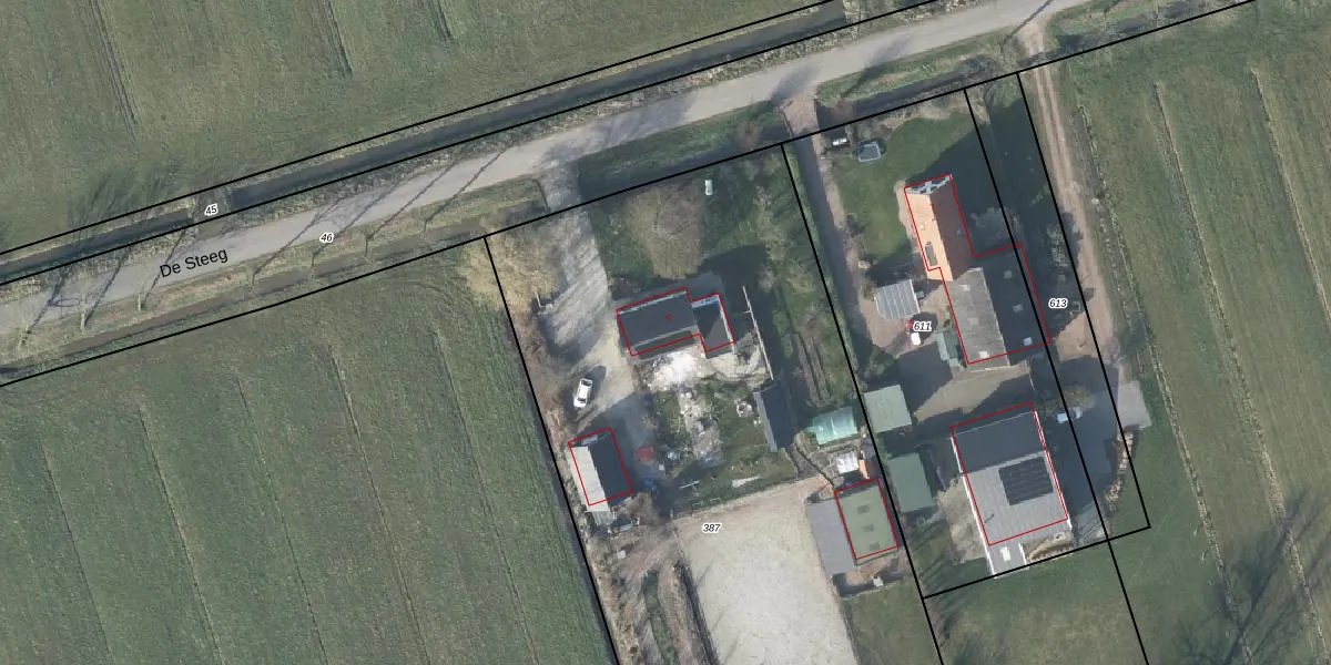 Het perceel waarop De Steeg 9 staat heeft een oppervlakte van 4995 m². Dit is een zeer groot perceel. De perceeloppervlakte wordt geregistreerd door het Kadaster. Gedetailleerde informatie over de maten van dit perceel kunt u vinden in het rapport Kadastrale kaart met maatvoering van De Steeg 9.