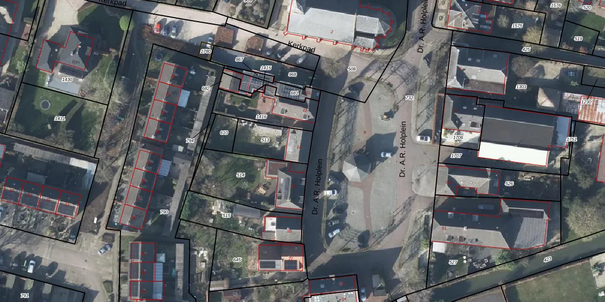 Dr. A.R. Holplein 14 is gelegen op kadastraal perceel LDN04I513. Deze kadastrale aanduiding is uniek en wordt gebruikt door het Kadaster om eigendomsrechten en andere zakelijke rechten vast te leggen. Het perceel maakt onderdeel uit van de kadastrale gemeente Lienden.
