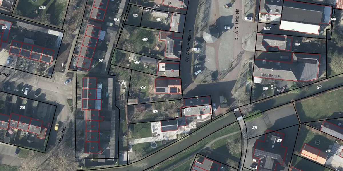 Dr. A.R. Holplein 22 is gelegen op kadastraal perceel LDN04I645. Deze kadastrale aanduiding is uniek en wordt gebruikt door het Kadaster om eigendomsrechten en andere zakelijke rechten vast te leggen. Het perceel maakt onderdeel uit van de kadastrale gemeente Lienden.