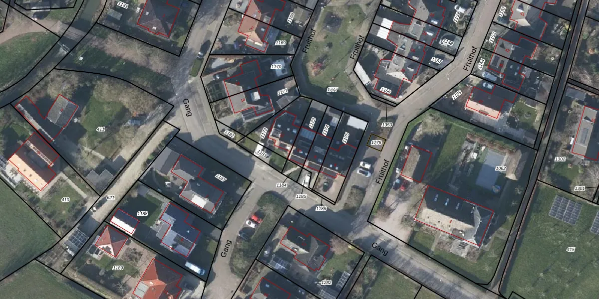 Het perceel waarop Gang 10 staat heeft een oppervlakte van 126 m². Dit is een middelgroot perceel. De perceeloppervlakte wordt geregistreerd door het Kadaster. Gedetailleerde informatie over de maten van dit perceel kunt u vinden in het rapport Kadastrale kaart met maatvoering van Gang 10.