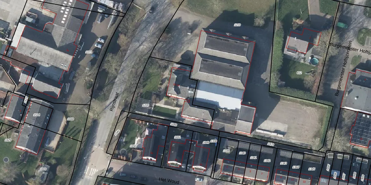Het perceel waarop Rijnstraat 12 staat heeft een oppervlakte van 1070 m². Dit is een zeer groot perceel. De perceeloppervlakte wordt geregistreerd door het Kadaster. Gedetailleerde informatie over de maten van dit perceel kunt u vinden in het rapport Kadastrale kaart met maatvoering van Rijnstraat 12.