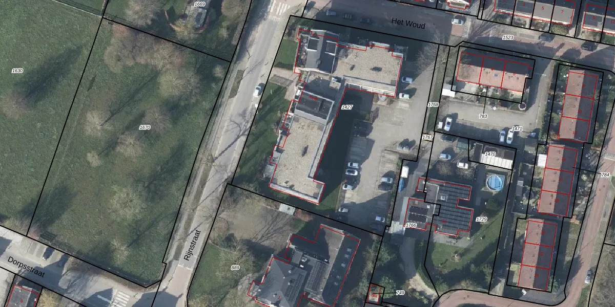 Het perceel waarop Rijnstraat 4-b staat heeft een oppervlakte van 3210 m². Dit is een zeer groot perceel. De perceeloppervlakte wordt geregistreerd door het Kadaster. Gedetailleerde informatie over de maten van dit perceel kunt u vinden in het rapport Kadastrale kaart met maatvoering van Rijnstraat 4-b.