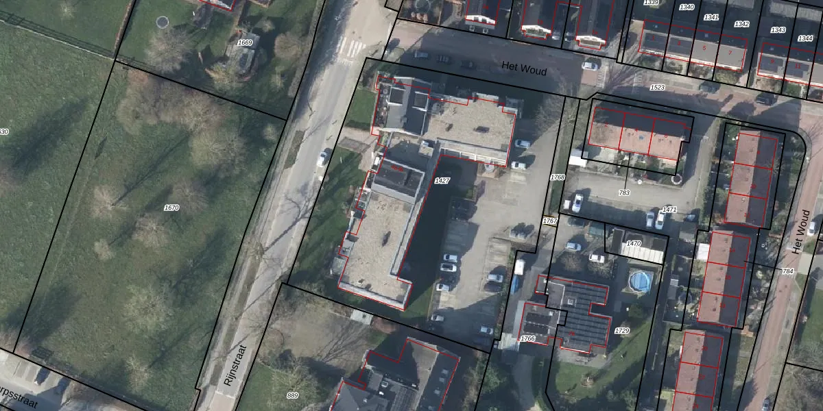 Het perceel waarop Rijnstraat 8-d staat heeft een oppervlakte van 3210 m². Dit is een zeer groot perceel. De perceeloppervlakte wordt geregistreerd door het Kadaster. Gedetailleerde informatie over de maten van dit perceel kunt u vinden in het rapport Kadastrale kaart met maatvoering van Rijnstraat 8-d.