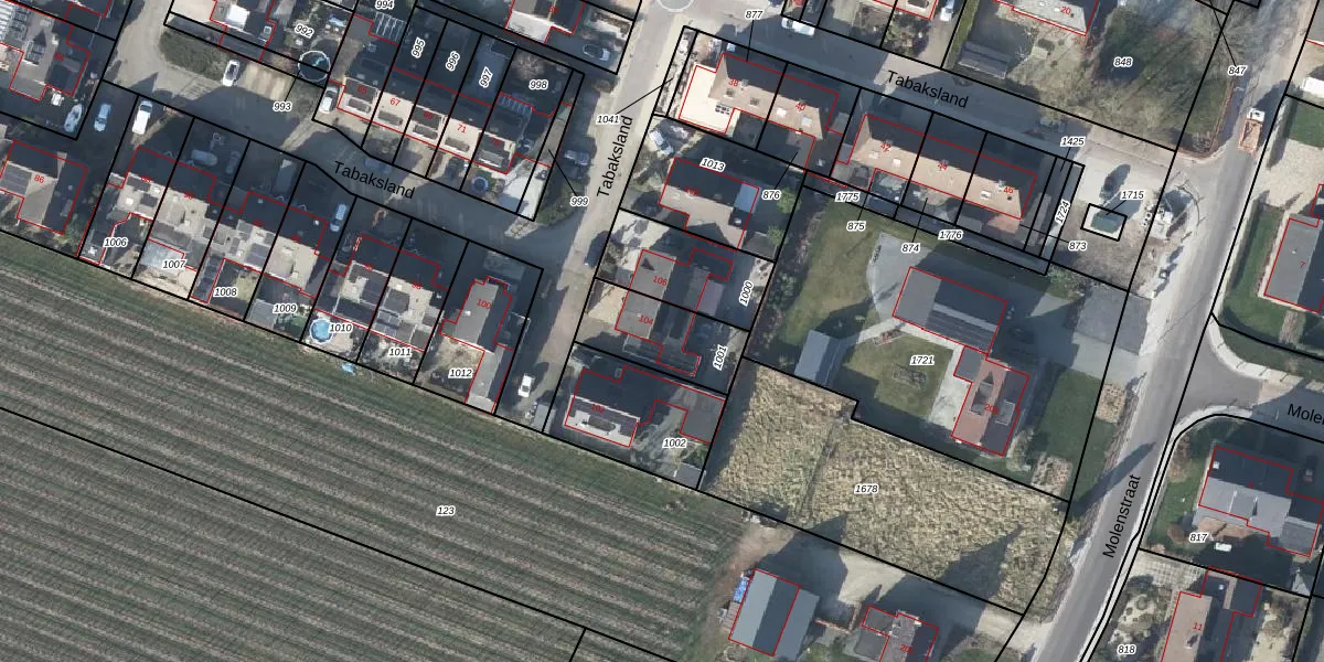 Het perceel waarop Tabaksland 104 staat heeft een oppervlakte van 270 m². Dit is een middelgroot perceel. De perceeloppervlakte wordt geregistreerd door het Kadaster. Gedetailleerde informatie over de maten van dit perceel kunt u vinden in het rapport Kadastrale kaart met maatvoering van Tabaksland 104.