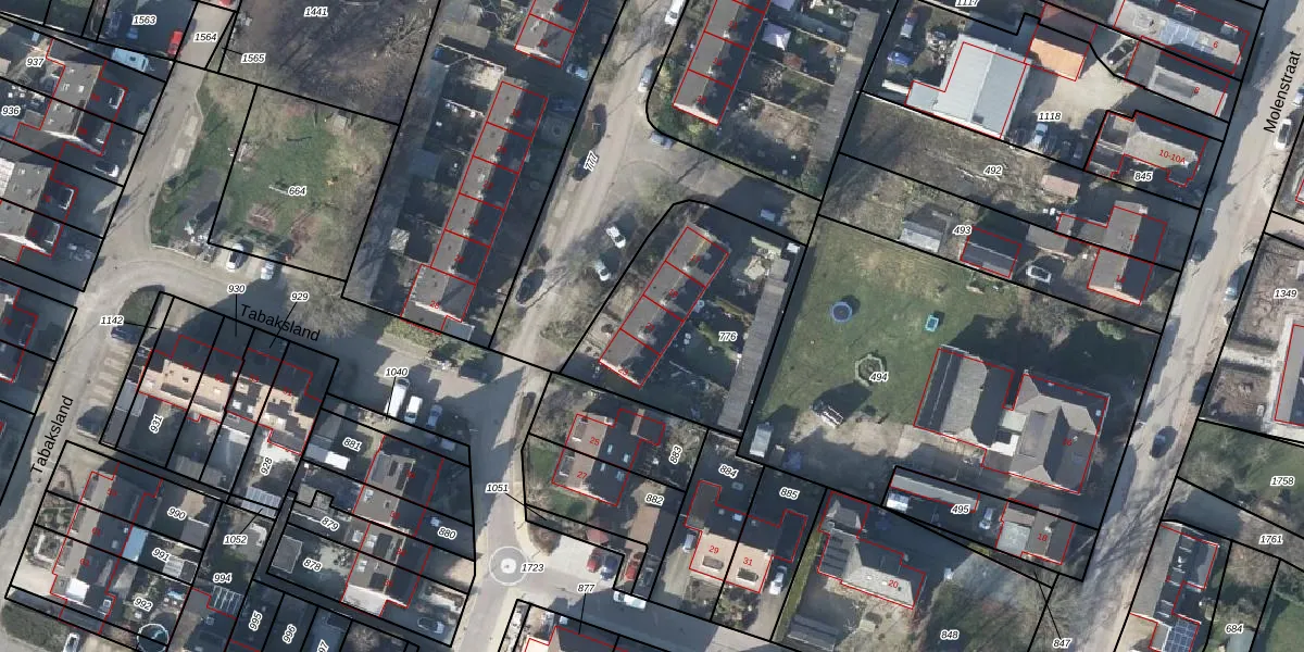 Het perceel waarop Tabaksland 21 staat heeft een oppervlakte van 810 m². Dit is een groot perceel. De perceeloppervlakte wordt geregistreerd door het Kadaster. Gedetailleerde informatie over de maten van dit perceel kunt u vinden in het rapport Kadastrale kaart met maatvoering van Tabaksland 21.